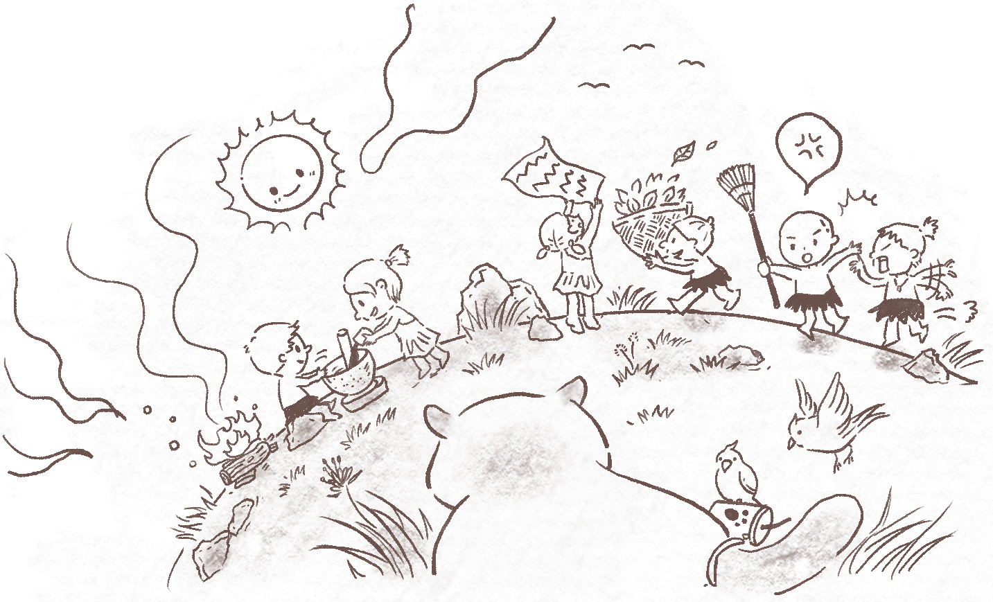 然而環顧四周,只有青草與泥土,以及一群勤奮勞作中的人類。一個大膽的想法在小傢伙的腦裡誕生。